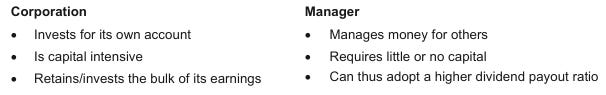 The parent (Corporation) may be distinguished from BAM (the Manager) on the following basis: